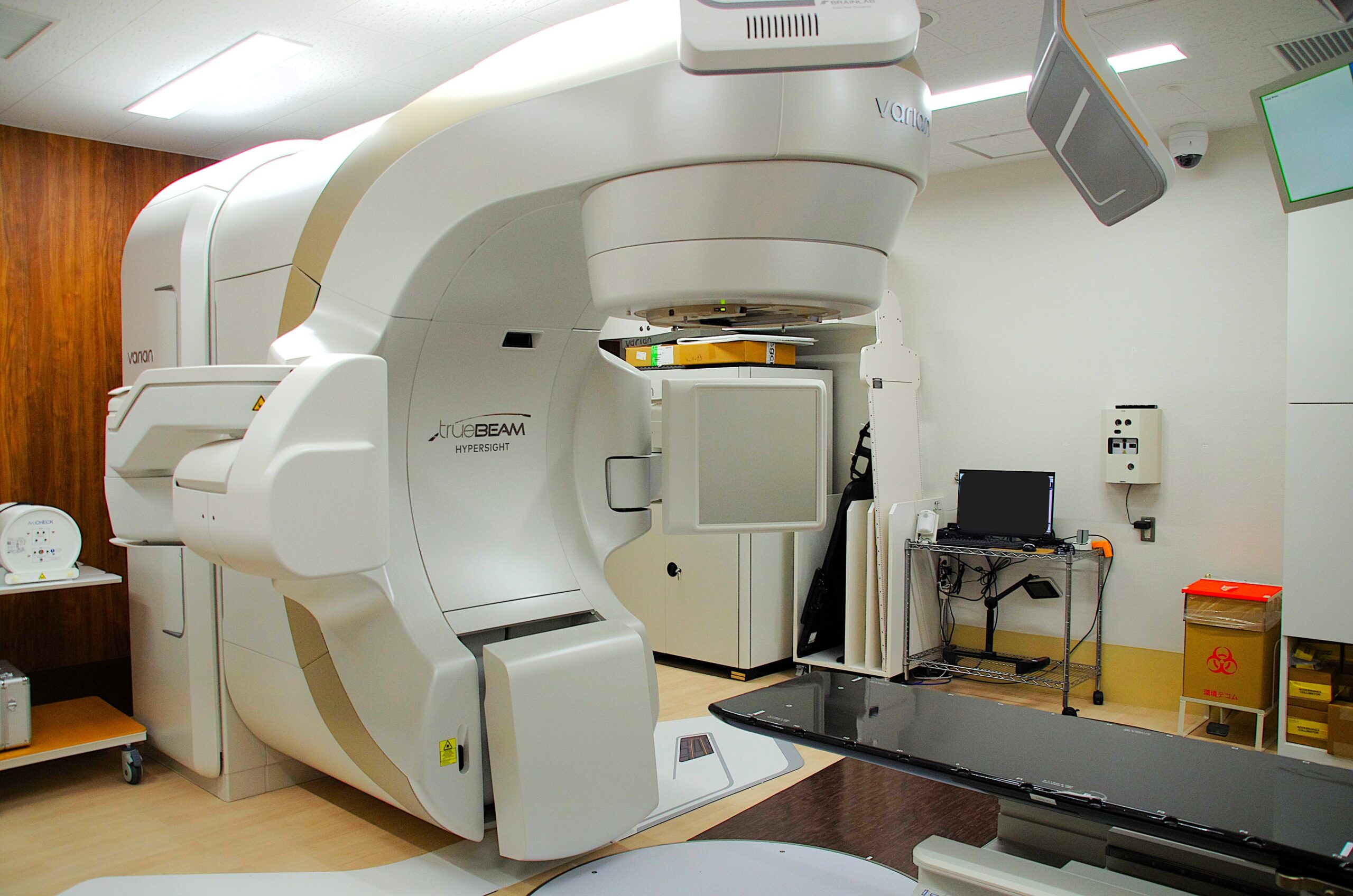 一般的な放射線治療には、リニアック(直線加速器)で発生させたエックス線が用いられます。患者さんは装置についているベッドに寝て治療を受けます。粒子線治療ではサイクロトロンやシンクロトロンといった大型の加速装置を使い高度な技術を要するので、治療ができる施設は限られています。